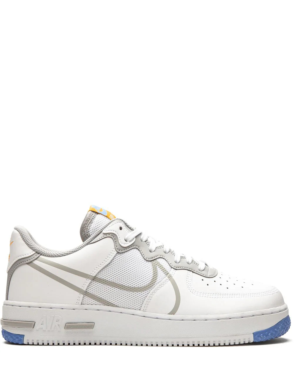 With a signature React midsole, the Air Force 1 React doesn't compromise on style or comfort. In a crisp white leather, this pair is detailed with light smoke grey and university gold notes. Nike has got your sneaker collection covered.