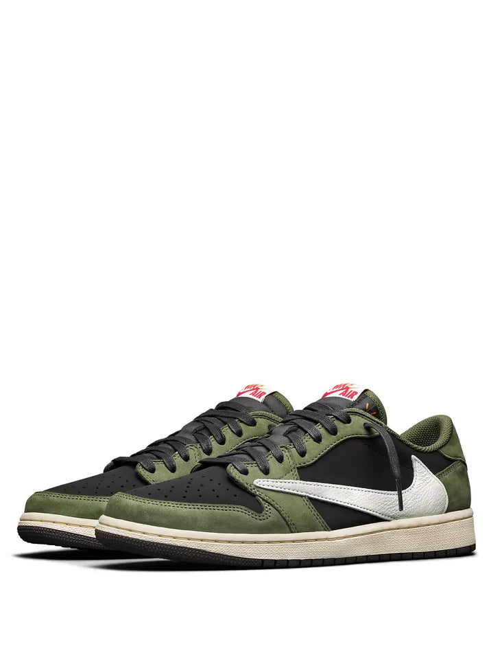 These AIR JORDAN 1 LOW TRAVIS SCOTT OLIVE BLACK sneakers offer expertly crafted design and superior comfort. Made with top-quality materials, these iconic low-tops provide exceptional support and style for everyday wear. With a sleek olive and black colorway, they make a bold statement while keeping you on your feet all day long.