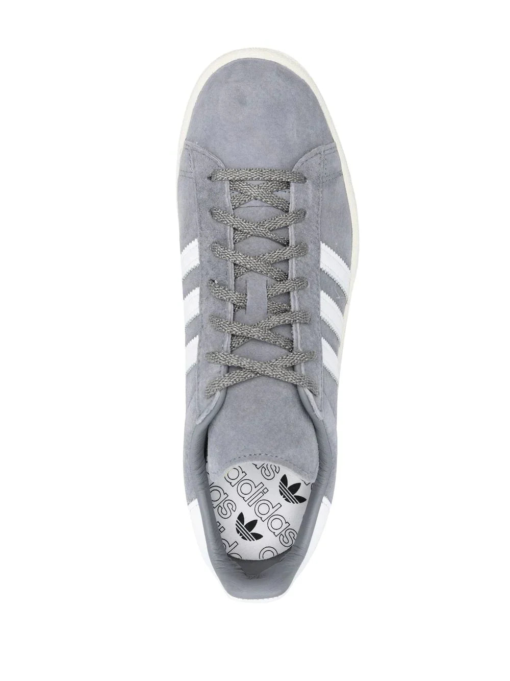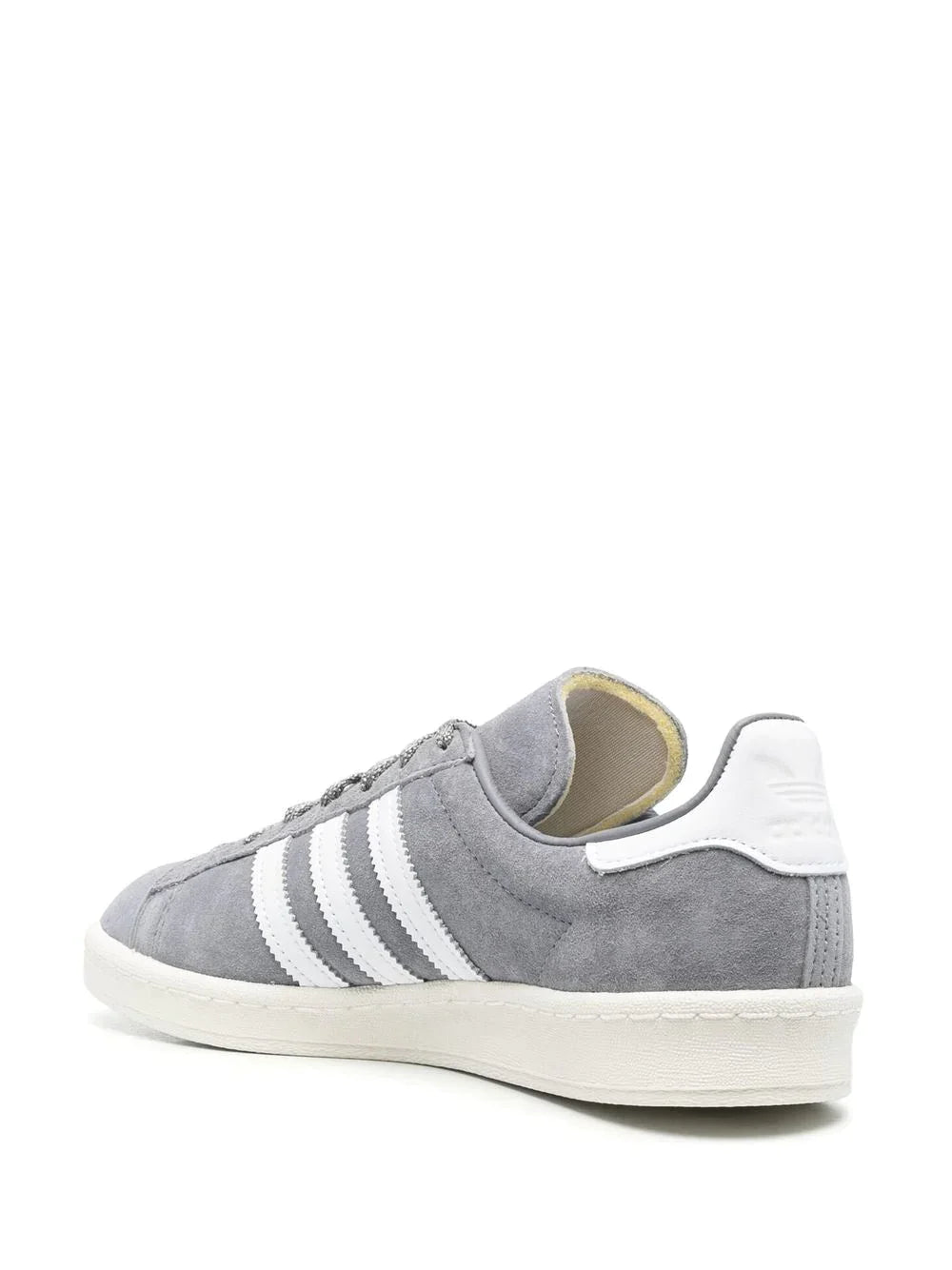 Campus 80s low-top sneakers from adidas featuring light grey, cloud white, calf leather, signature 3-Stripes logo, front lace-up fastening, round toe and chunky rubber sole.